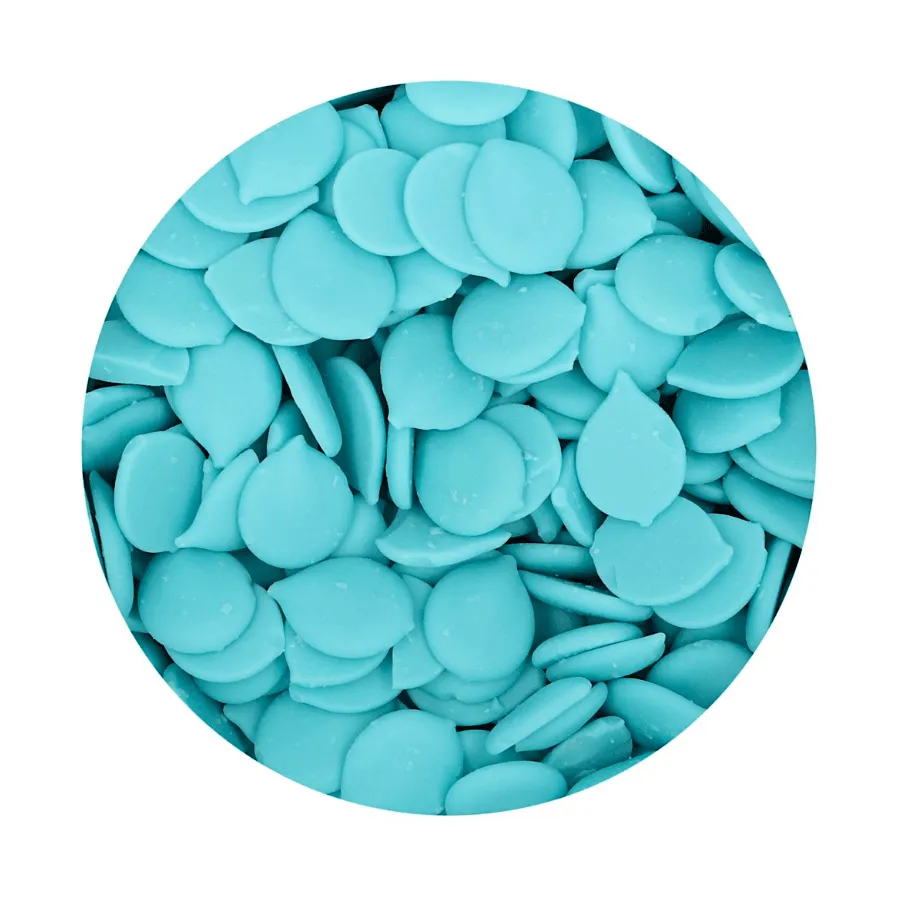 Estos Deco Melts de color "Light Blue" tienen un delicioso sabor a cremoso chocolate blanco. Puedes colorearlos fácilmente con colorantes alimenticios aptos para chocolate.