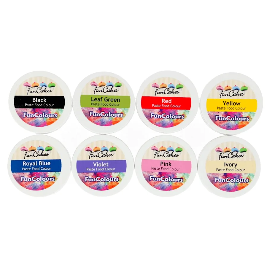 Los colorantes en pasta concentrados FunColours de FunCakes son los colorantes perfectos para colorear fondant, mazapán, pasta de goma, pasta de modelar y pasta de flores.